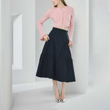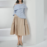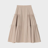 サイドパネルはギャザーを寄せ、ふんわりとしたフレア分量を生み出しています。