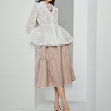 生地をたっぷりと使用しながらも、薄手のタフタ生地で軽やかな仕上がりに。