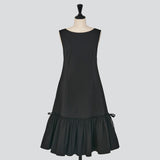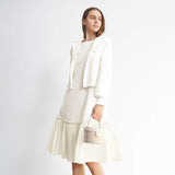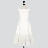 裾には異素材のタフタをドッキングし、軽やかなフレアシルエットに仕上げました。