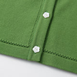 小さな花形の貝ボタンが、上品さの中にほんのり可愛らしさをプラス。
