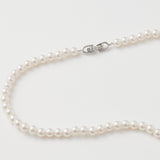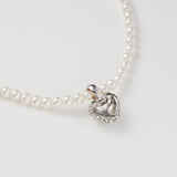 クリスタルのハートチャームが優雅に揺れる、気品あふれるパールネックレス。