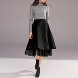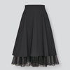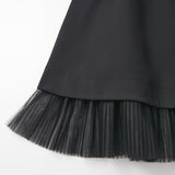 裾には繊細なチュールのープリーツをあしらったインナースカートを重ね、動くたびに軽やかに揺れて、表情豊かなニュアンスを添えます。