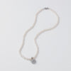 クリスタルのハートチャームが優雅に揺れる、気品あふれるパールネックレス。