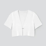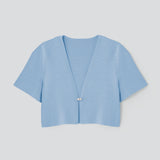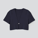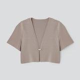 ブローチのような輝きのカギホックがポイントのニットジャケット。