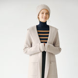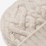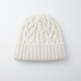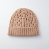 上質なカシミヤ糸を6本どりにして贅沢に使用し、大小のケーブル編みをバランスよく配置したカシミヤニットキャップです。