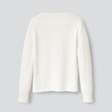 柔らかいイタリア製の糸で編まれたゆったりとしたシルエットのセーター。カジュアルでシックなスタイルにぴったりの1着です。やや高めのボートネックとクラシックなケーブル編みが特徴で腰上が隠れる着丈になっています。