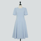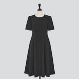 シンプルながらエレガントな印象のショートスリーブワンピース。