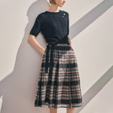 ウールシルクの非常に軽やかな素材を用いた、上品なチェック柄スカート。
