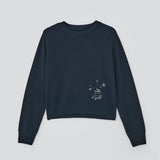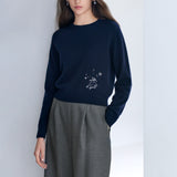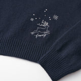 左裾にはクリスタルやパール、メタリック糸、スパンコールを贅沢にあしらった雪の結晶とトナカイの刺繍を施し、華やかで繊細な輝きをプラス。