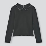ハンドステッチ風の編みディテールがポイントの、スリムフィットニットトップス。