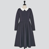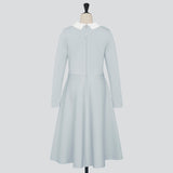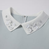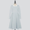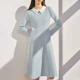 襟ぐりに施したビーズ刺繍が華やかな表情を添える白襟ニットワンピース。