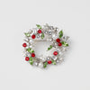 異なる形や色のストーンとパールを組み合わせた、心ときめくホリデー仕様のクリスマスリースブローチ。グリーンのマーキスカットストーンが葉のように広がり、中心には赤いラウンドストーンがまるでヒイラギのように輝いています。