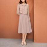 ワンピースに合わせればフォーマルな装いに、デニムパンツ・Tシャツの上に合わせればカジュアルにも使用できる万能ジャケットになっています。