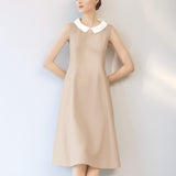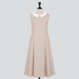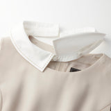 襟ぐりは取り外し可能な白襟付き。白襟部分には身頃と同色の刺繍のステッチが施され、着こなしのワンポイントに。